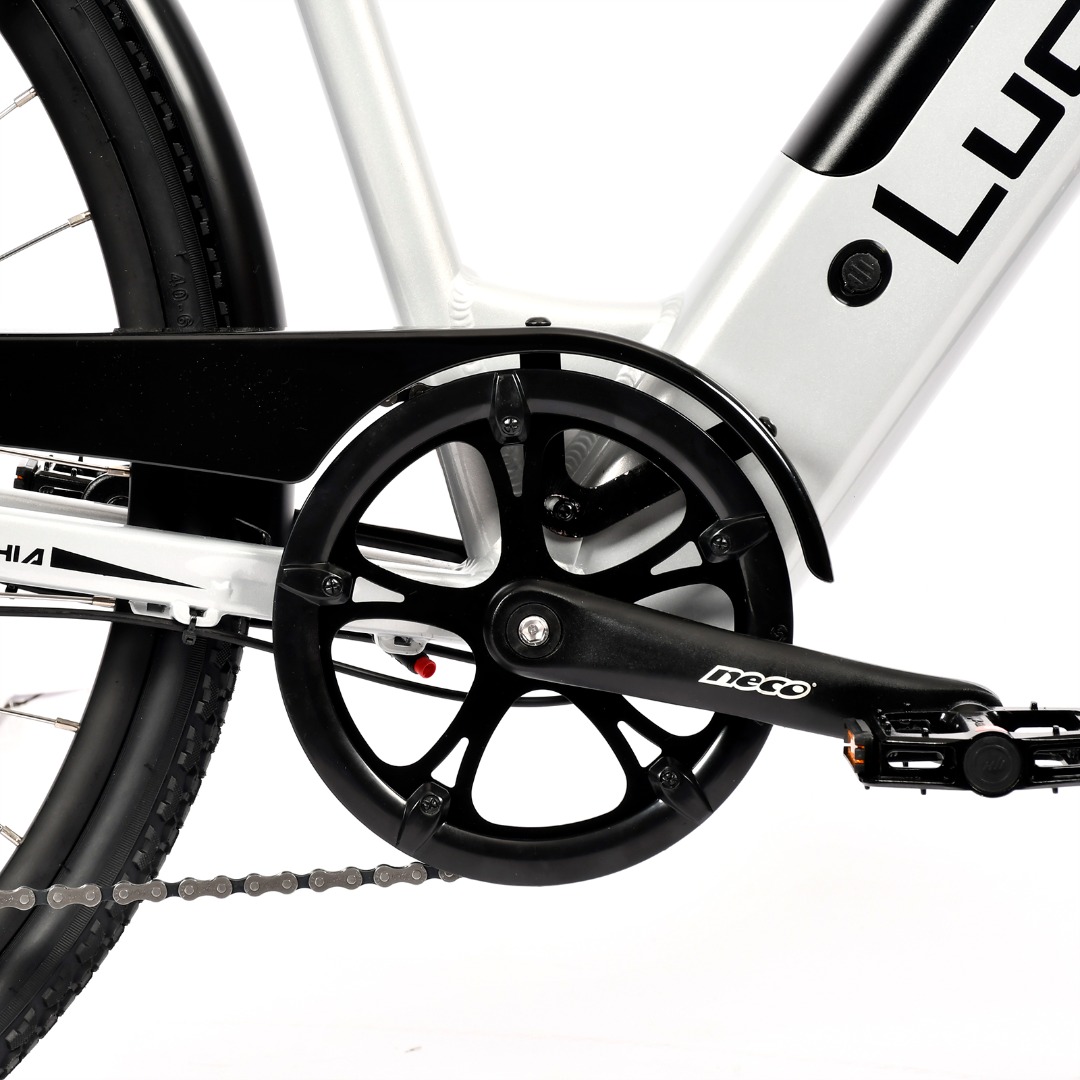 Il dispose aussi de tous les accessoires nécessaires comme : éclairage LED avant et arrière, porte-bagage arrière intégré au cadre, garde-boue, protège chaine, béquille et sonnette.