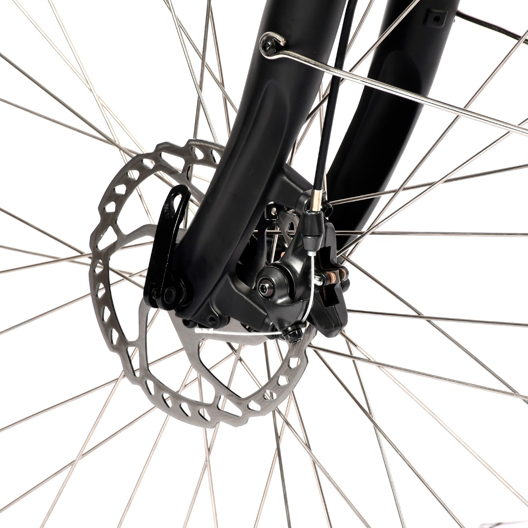 L’écran LCD, installé sur le guidon vous indique à tout moment votre niveau de pédalage assisté, votre vitesse, la distance parcourus ainsi que le niveau de batterie. Il est équipé d’un cadre en aluminium, de 7 vitesses de composants Shimano, de roues de 28 pouces, d’une suspension avant hydraulique Zoom et de freins à disque hydraulique avant et arrière.