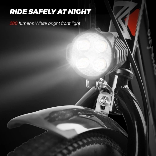 Éclairage avant super lumineux de 280 lumens pour une conduite en toute sécurité dans l’obscurité.